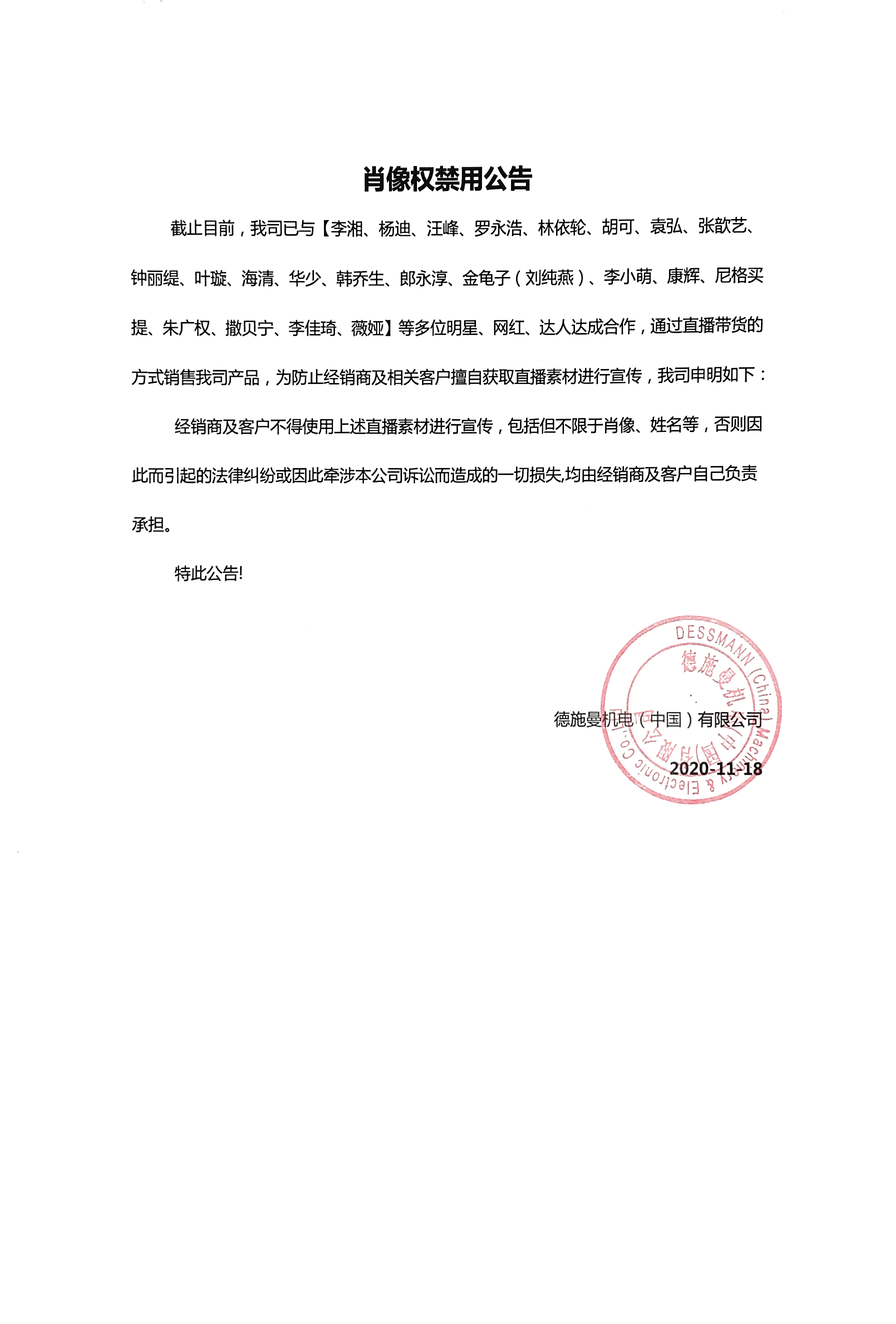 肖像權(quán)禁用公告