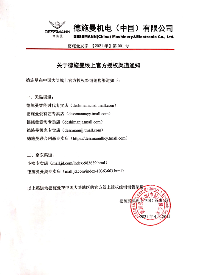 關(guān)于德施曼線上官方授權(quán)渠道通知