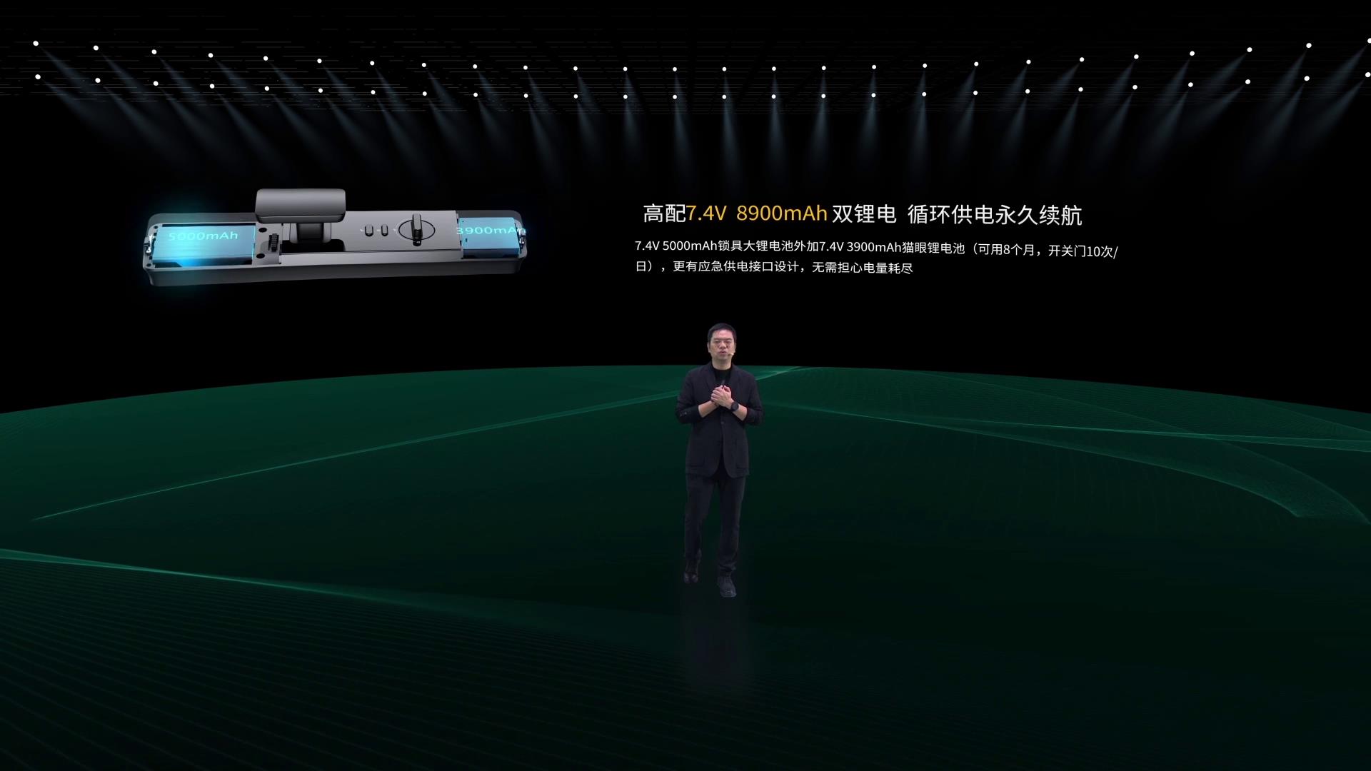 另外,這次新品在開鎖方式上也是最豐富的,如3D人臉智能視頻鎖Q50FPro頂配可達十種解鎖方式。 同時,在電池續航上,這次發布的Q50MPro配備的是7.4V 8900mAh雙鋰電池,是目前行業里容量最大,續航時間最久的配置。