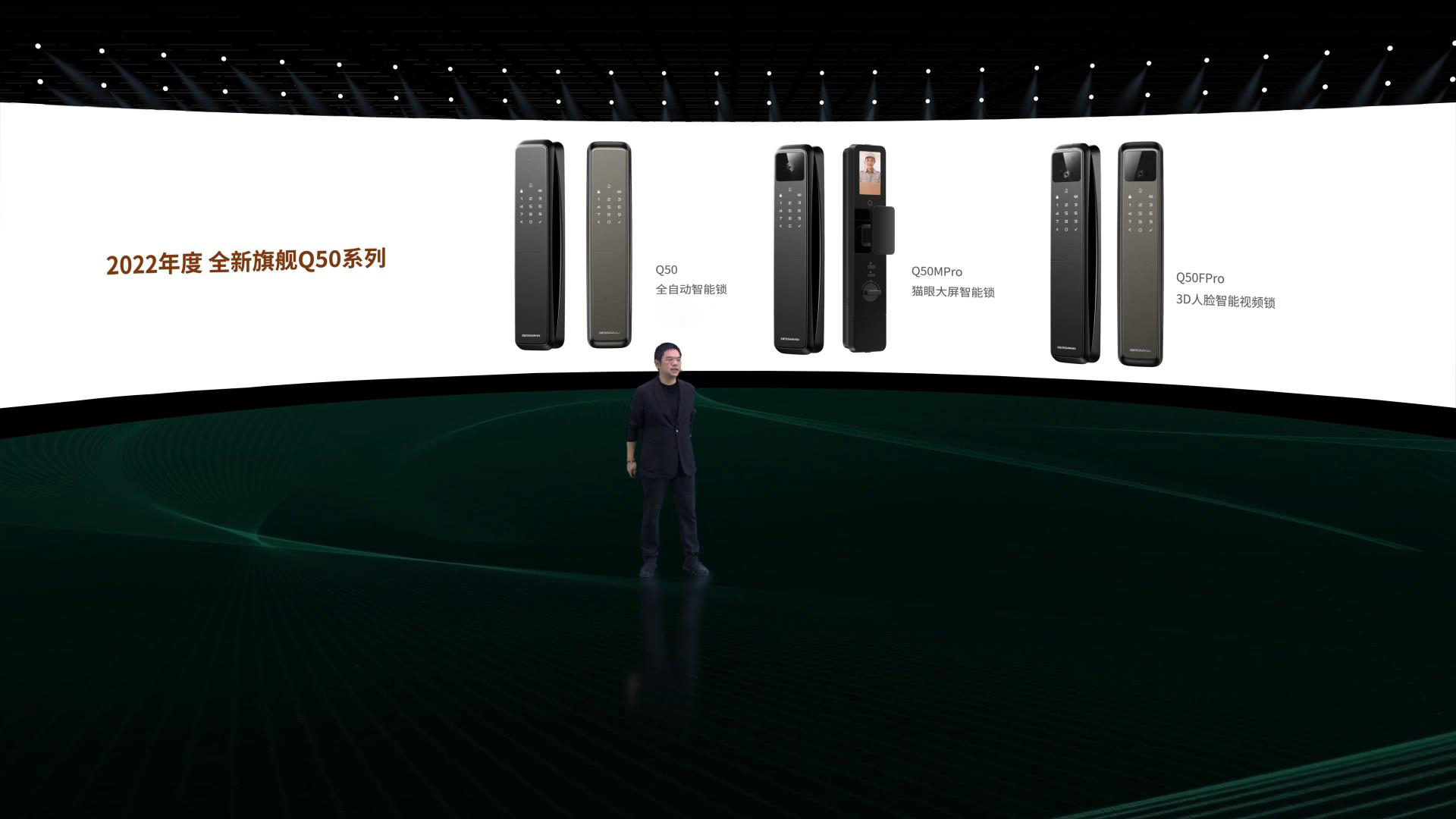 與Q50系列同時發布的還有適合老人小孩使用的德施曼指靜脈智能鎖Q5S、升級版全自動貓眼鎖Q5MPlus、無鑰匙智能鎖星密碼E20、移動可視屏小Q等功能豐富的產品,可滿足更多家庭個性化的需求。