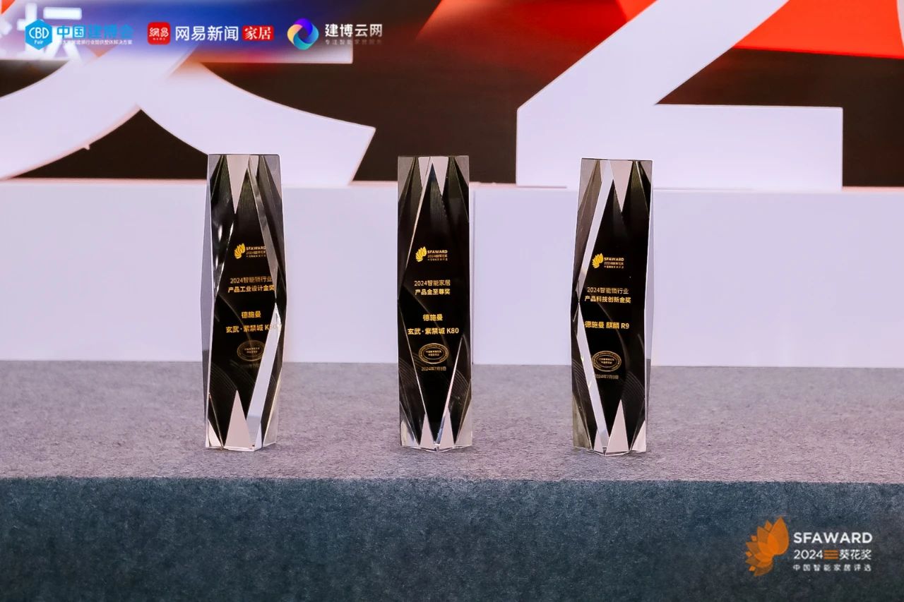 德施曼兩款旗艦新品,與海爾、公牛、TCL等品牌一同獲得葵花獎的權威認可:德施曼行業首款紫禁城聯名智能鎖玄武K80榮獲”智能鎖行業產品工業設計金獎””智能家居產品金至尊獎”兩項大獎;